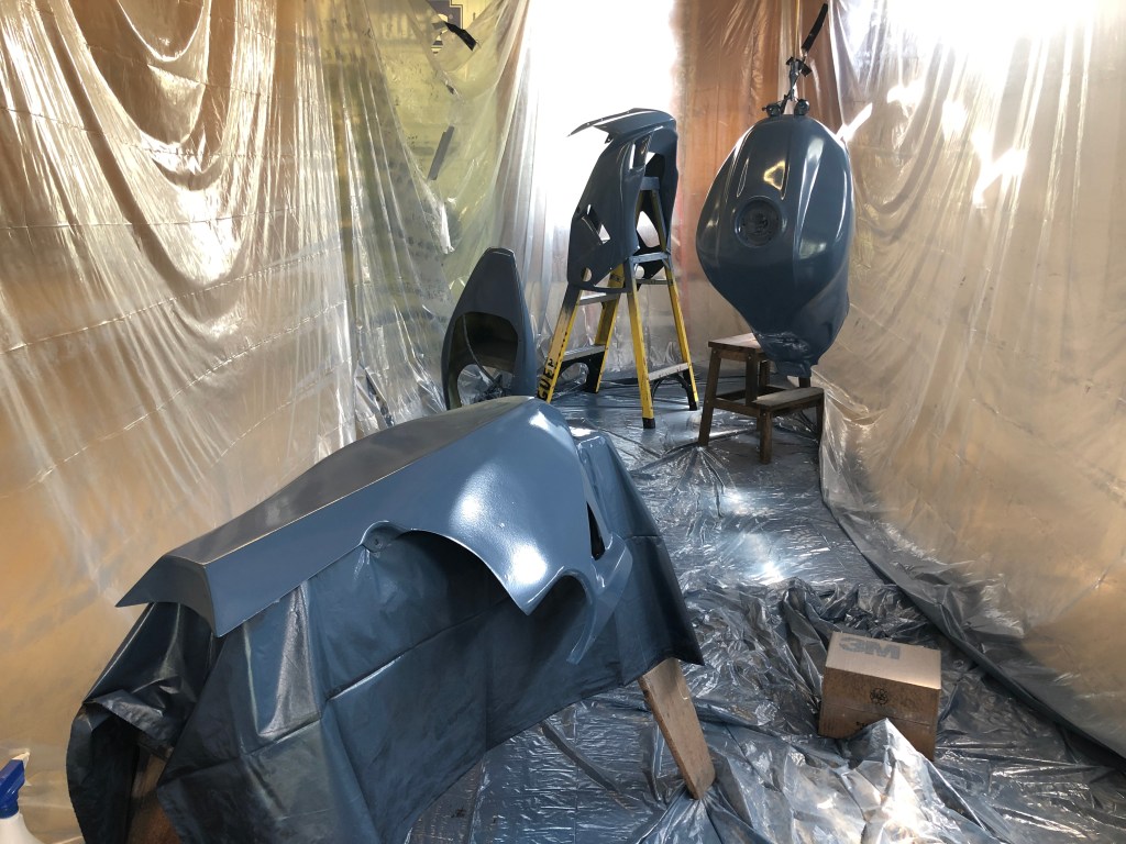 After much prep, I assembled a tent in my garage, purchased a single-stage automotive lacquer, got out the $80 harbor freight spray gun and re-sprayed the body in Toyota Cavalry Blue.