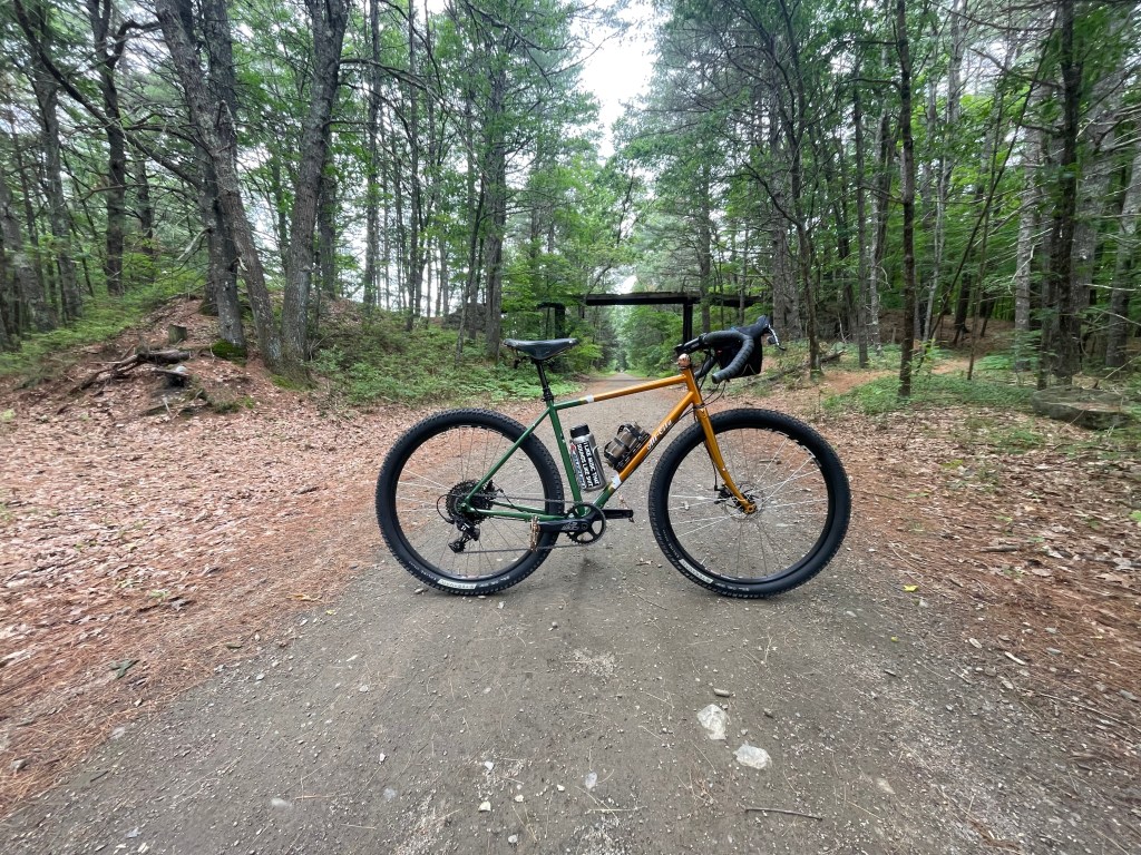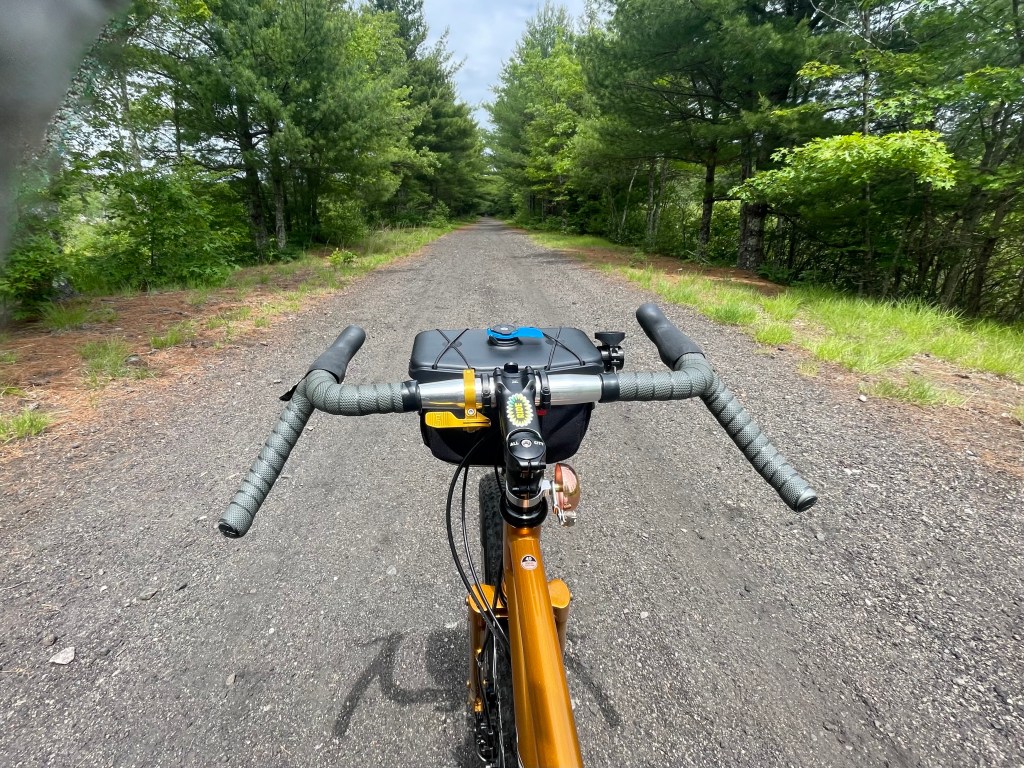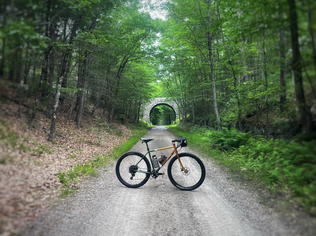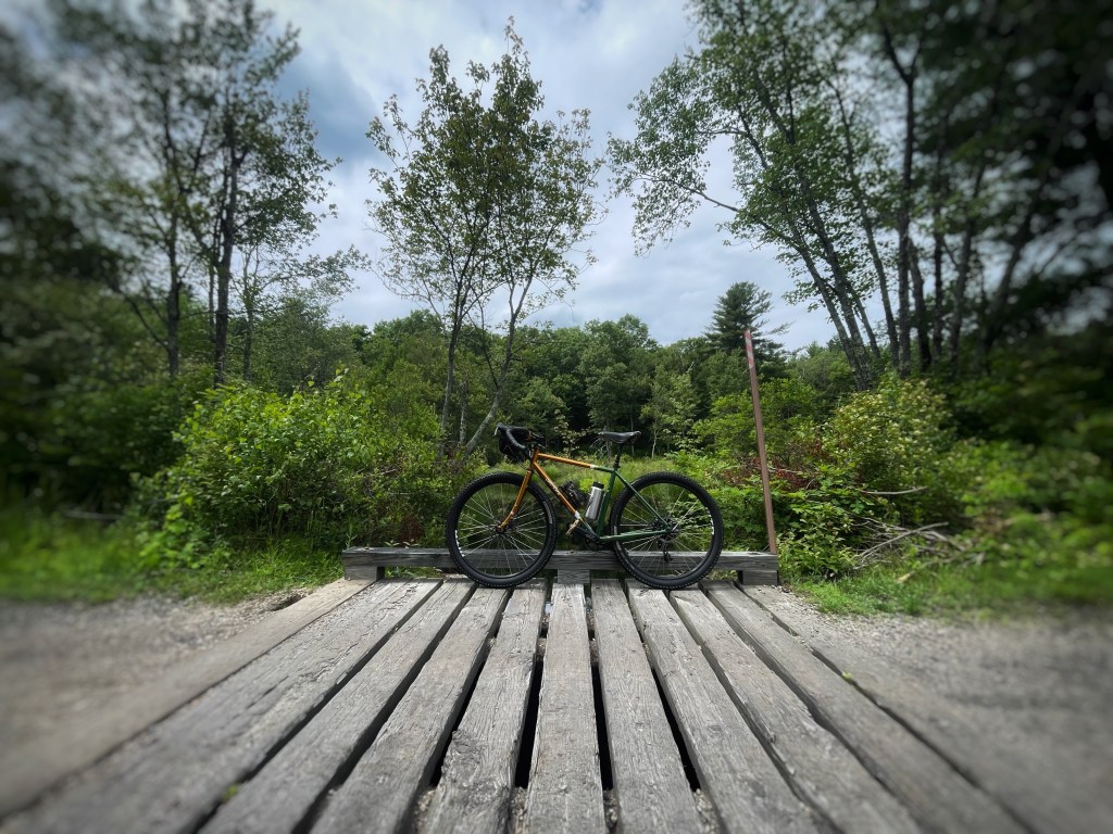 I drove up to the SNETT (SOUTHERN NEW ENGLAND TRUNKLINE TRAIL) and parked at the South street lot in Douglas, Massachusetts. A nice guy on a very racy carbon gravel-bike made it a point to stop and chat. He was really digging on my bike, as I was with his. Complete opposites of the spectrum, but different tools…